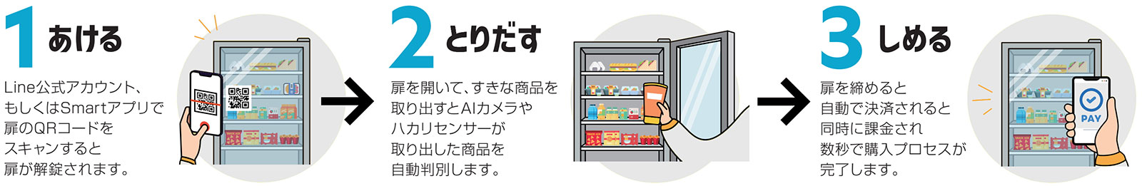 スキャン→取り出す、購入プロセスがたった「5秒」で完了。 スマリテはテクノロジーで売り場を最適化する、次世代のリテール・プラットフォームを提供します。